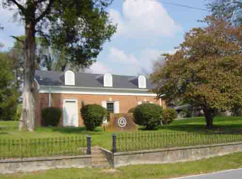 Interesting colonial style remote switch serving the Lynchberg community home to Jack Daniels Whiskey Distillery. Neat bell logo attached on entrance block. |